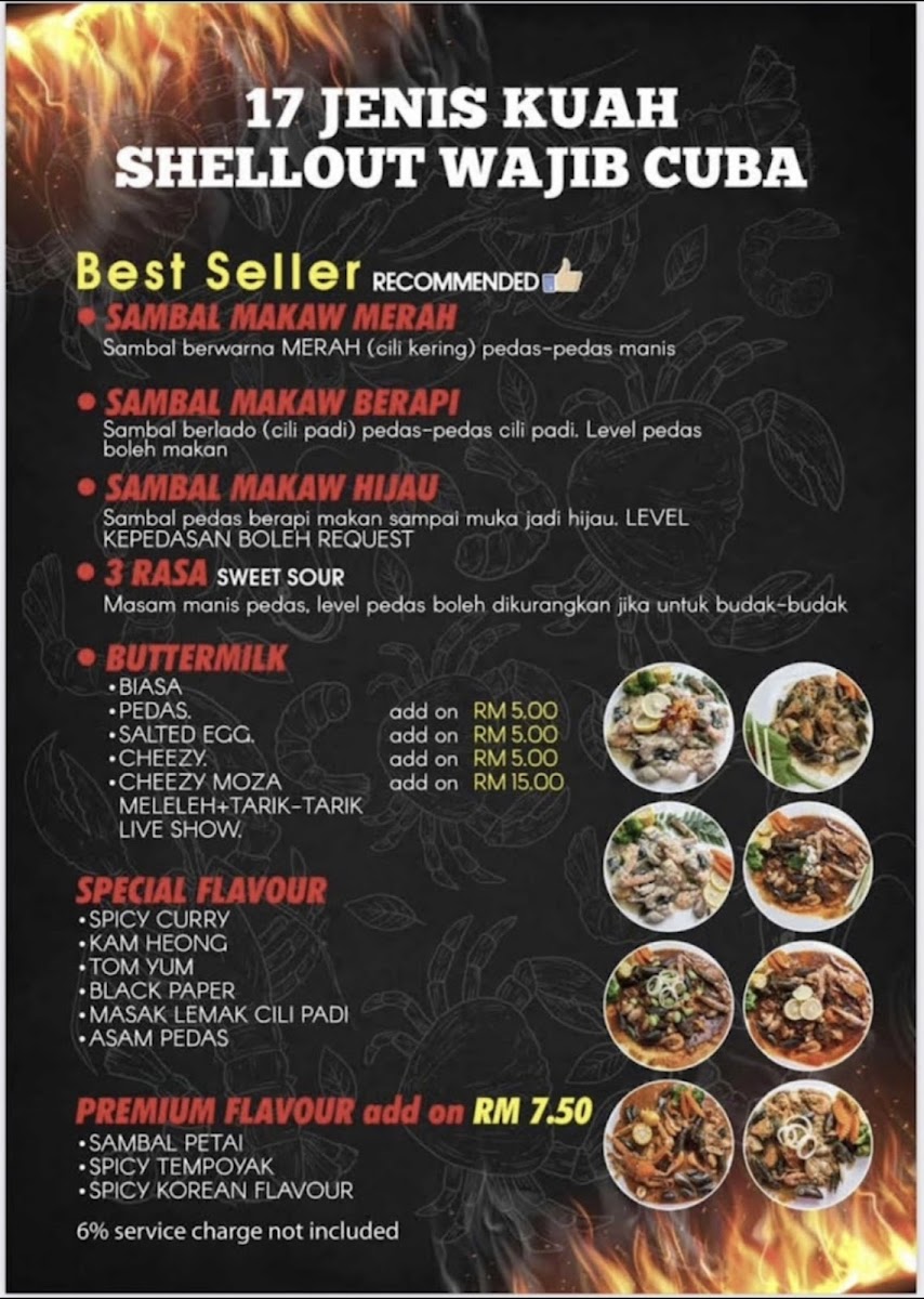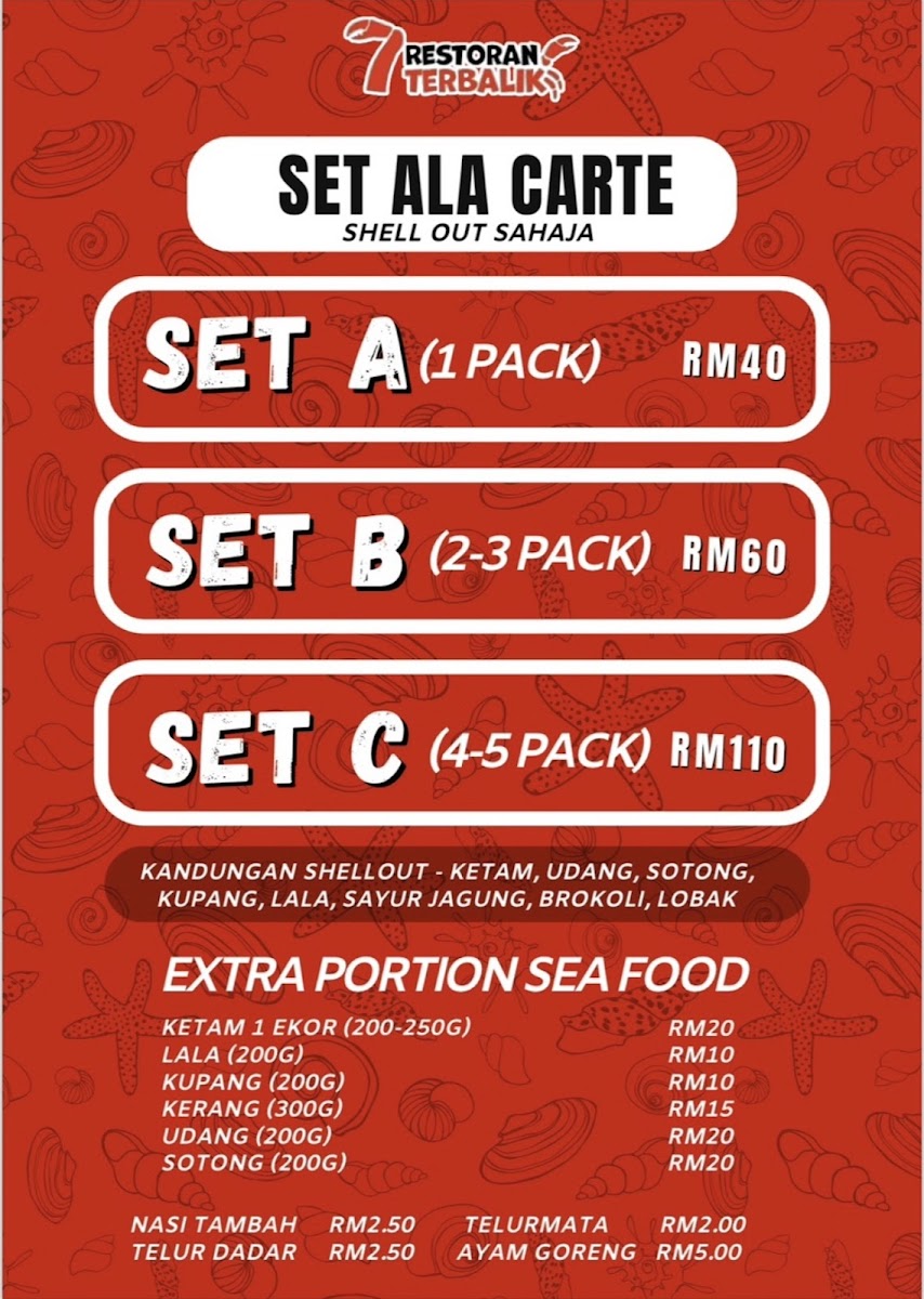 SHELLOUT 7 TERBALIK MELAKA Menu